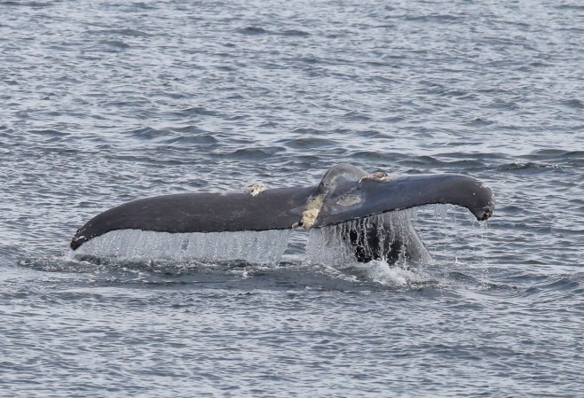 "Sharktooth" on October 2nd, 2010 - with entanglement scarring. Photo: Bruce Paterson.