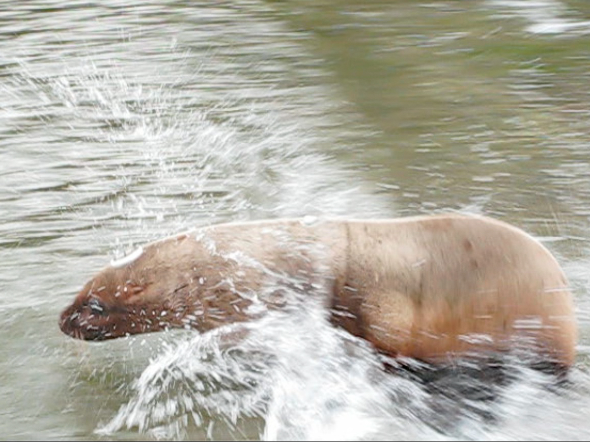 Kaouk bounding unhesitatingly back into the wild. Where is he now? See links below for links to the Vancouver Aquarium announcement and track data. Photo is a video grab by Peter Olesiuk (DFO)
