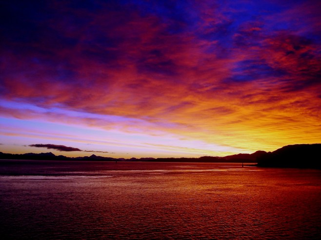 Sunset off the coast of Northern Vancouver Island. Photo – Hildering.
