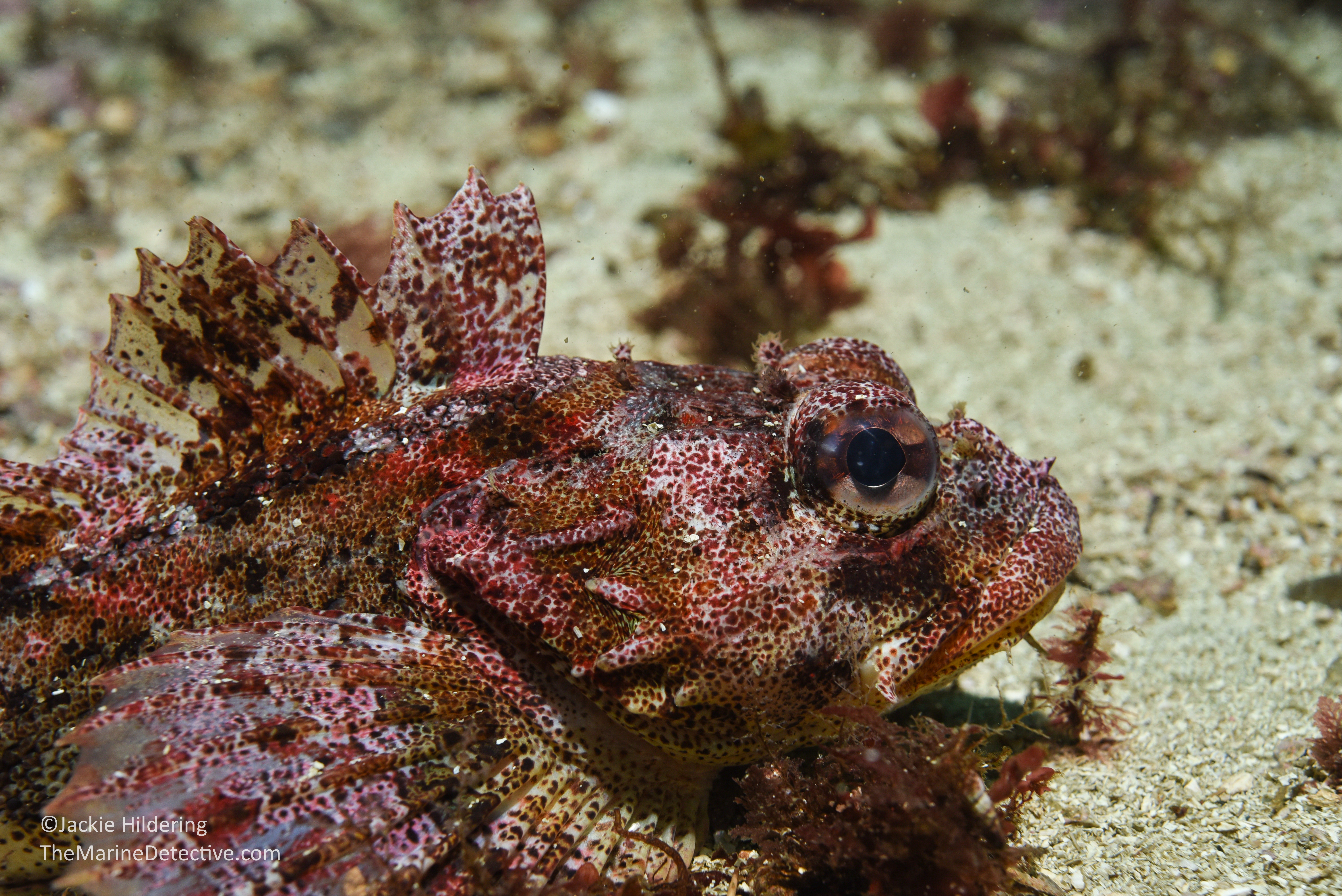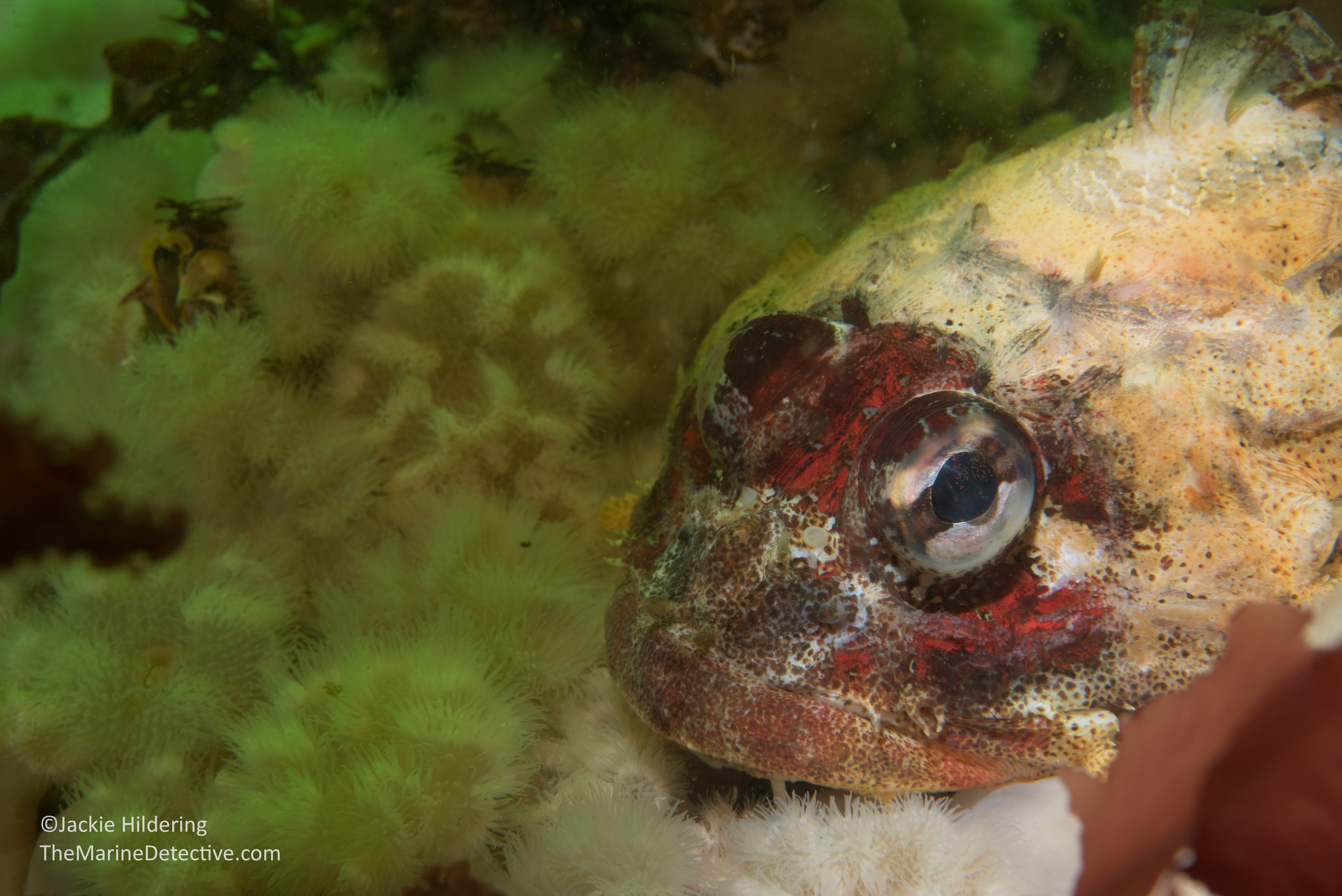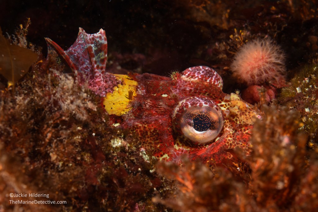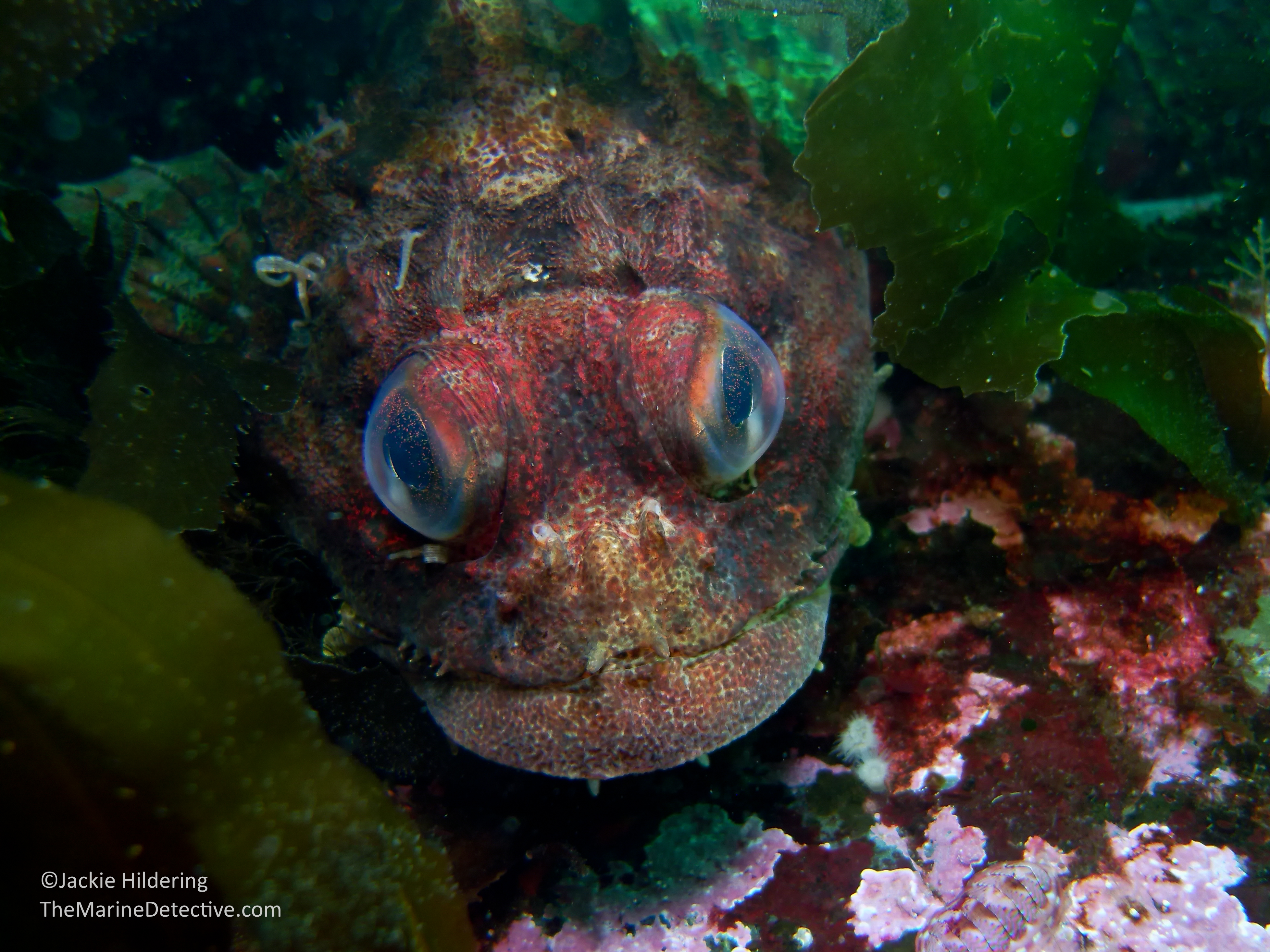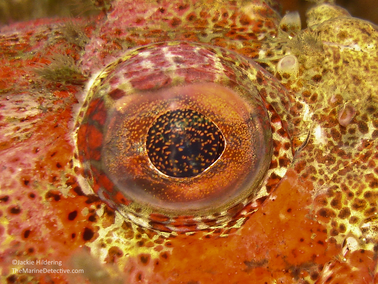 The remarkable eyes of the Red Irish Lord. The flecks you see are corneal chromatophores which can change colour to add the to species’ ability to camouflage.