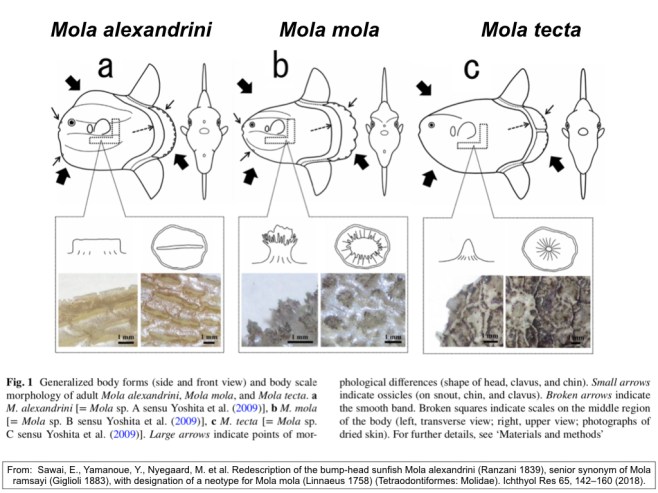 Mola tecta is the Hoodwinker Sunfish. See diagram at the end of this blog for the discerning characteristics.