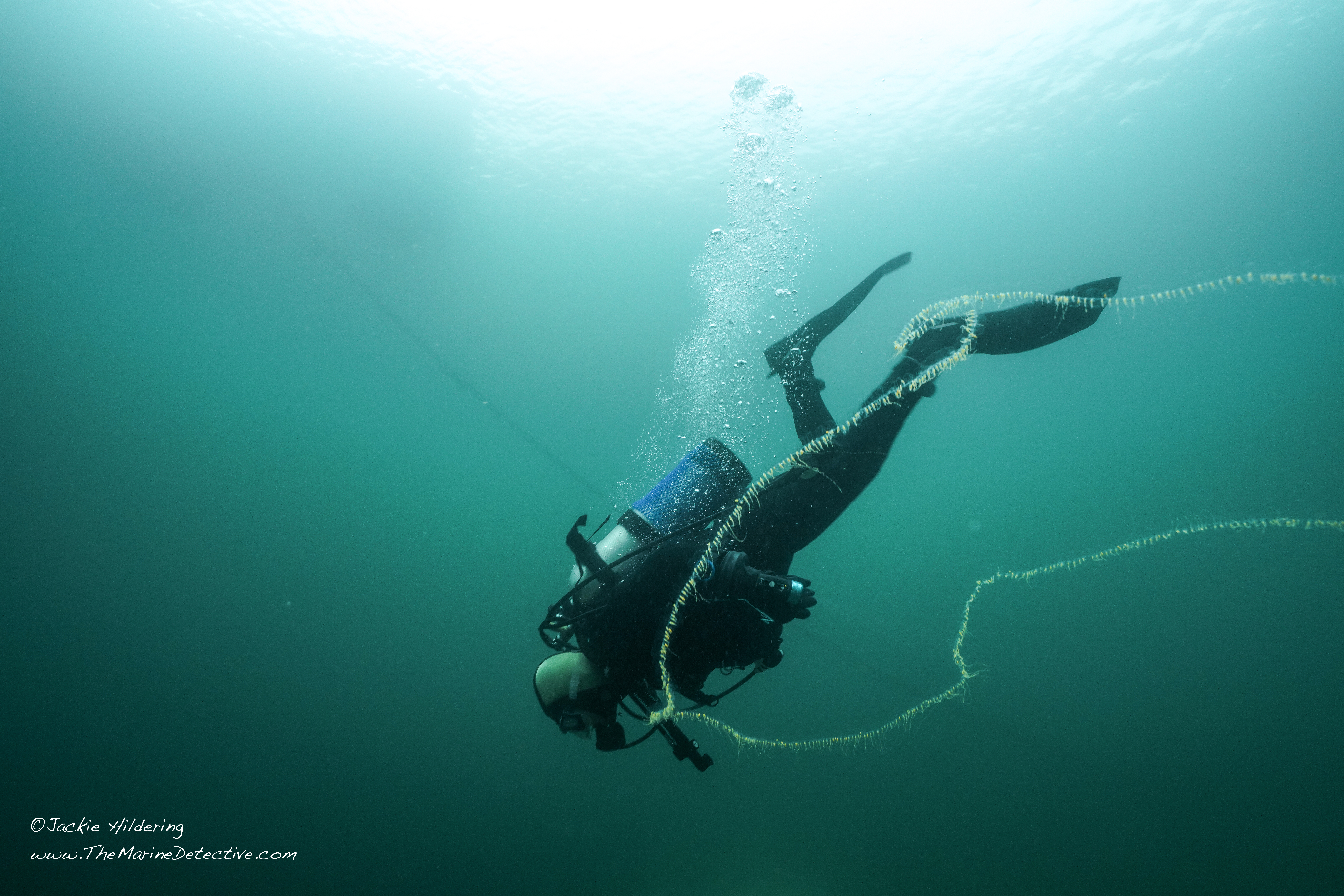 Smaller Bell-Headed Tailed Jelly; April 2nd, 2018; Browning Pass, British Columbia with dive buddy Natasha Dickinson.