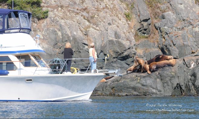 How’s this for astoundingly misguided behaviour? Boats are to remain at least 100m away from seal and sea lion haulouts and rookeries. Steller Sea Lions are protected under Canada’s Species at Risk Act.