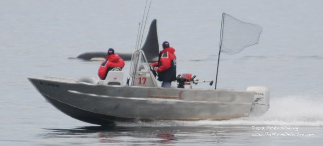Vessel under power and almost on top of a member of the A30 matriline of Northern Residents (Threatened population). Photo: ©Jackie Hildering.