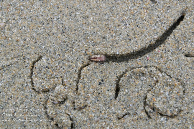 We had found the animal that was making the tracks and concluded the tiny clams must be feeding on organic material in this way. It is known as “deposit feeding” whereby the bivalves use their inhalant siphons to sweep the sand for detritus and microbes = snacks.