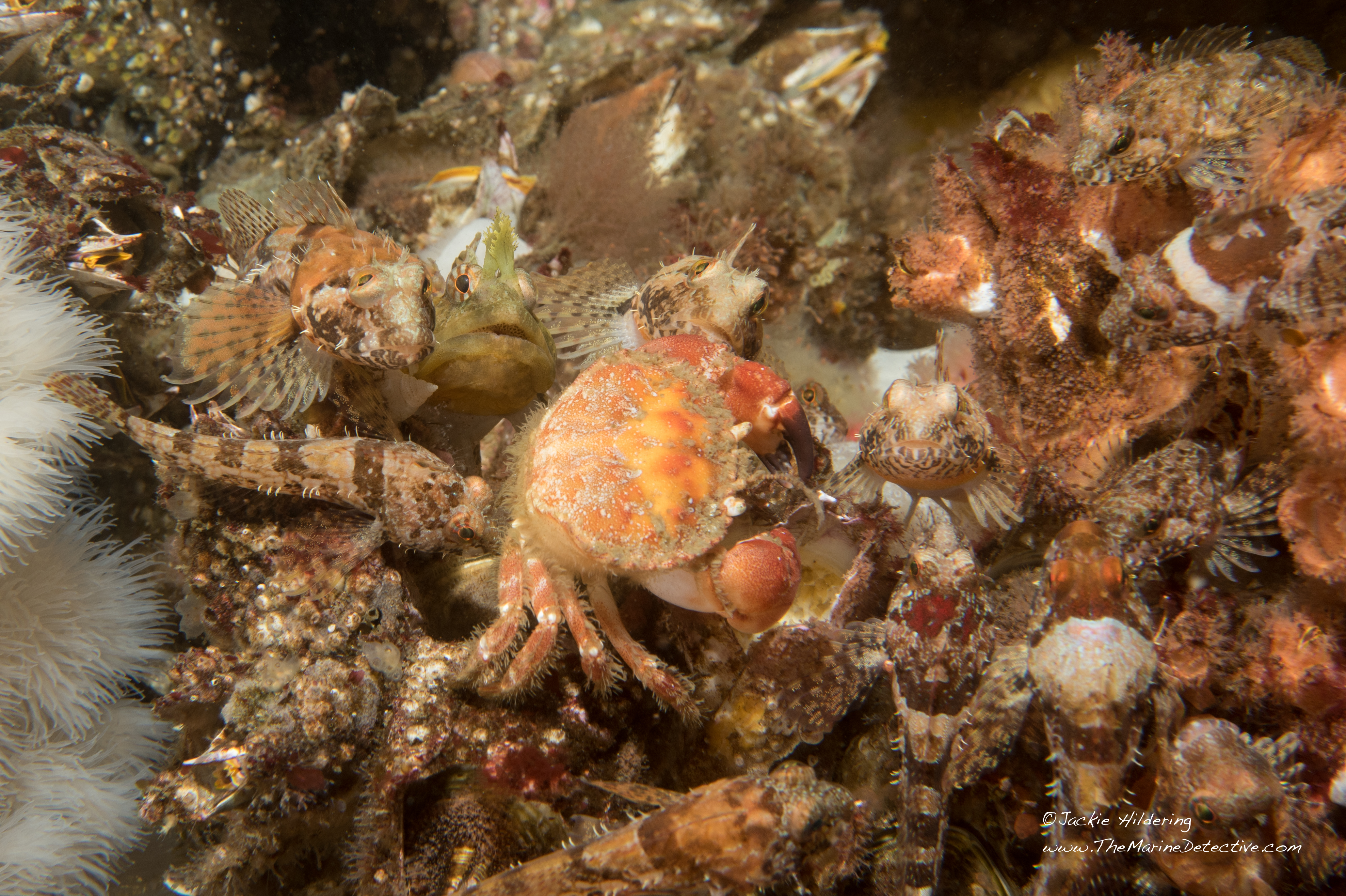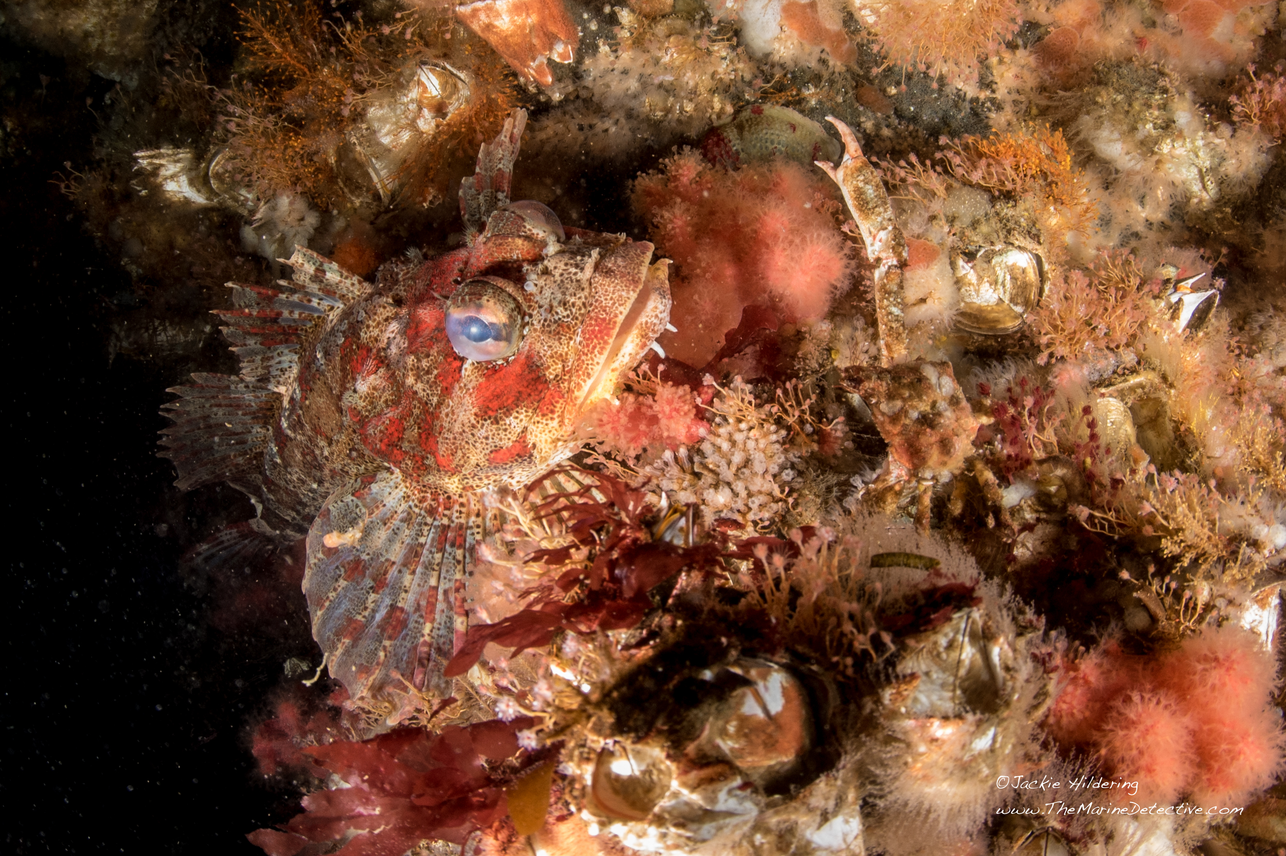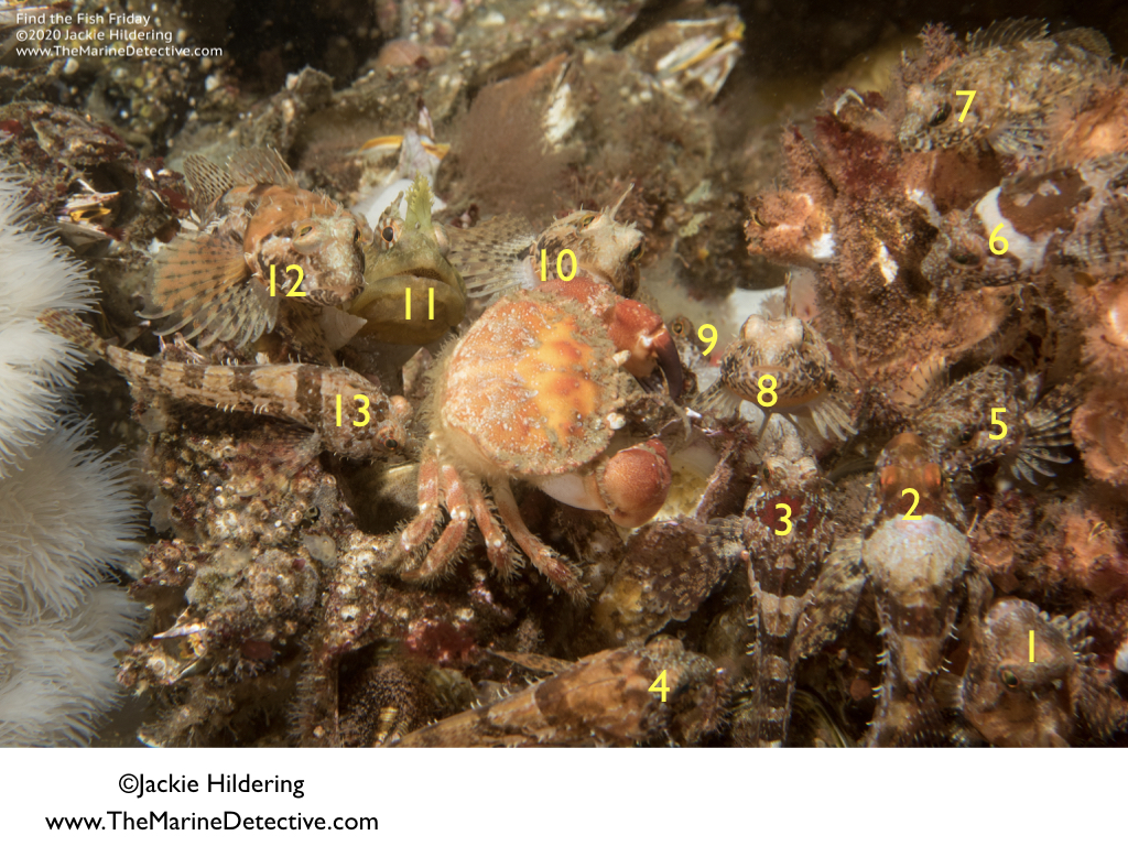 Think about how big the top of a school desk is. The photo below is of an area much smaller than that and there are TWELVE Scalyhead Sculpins here!