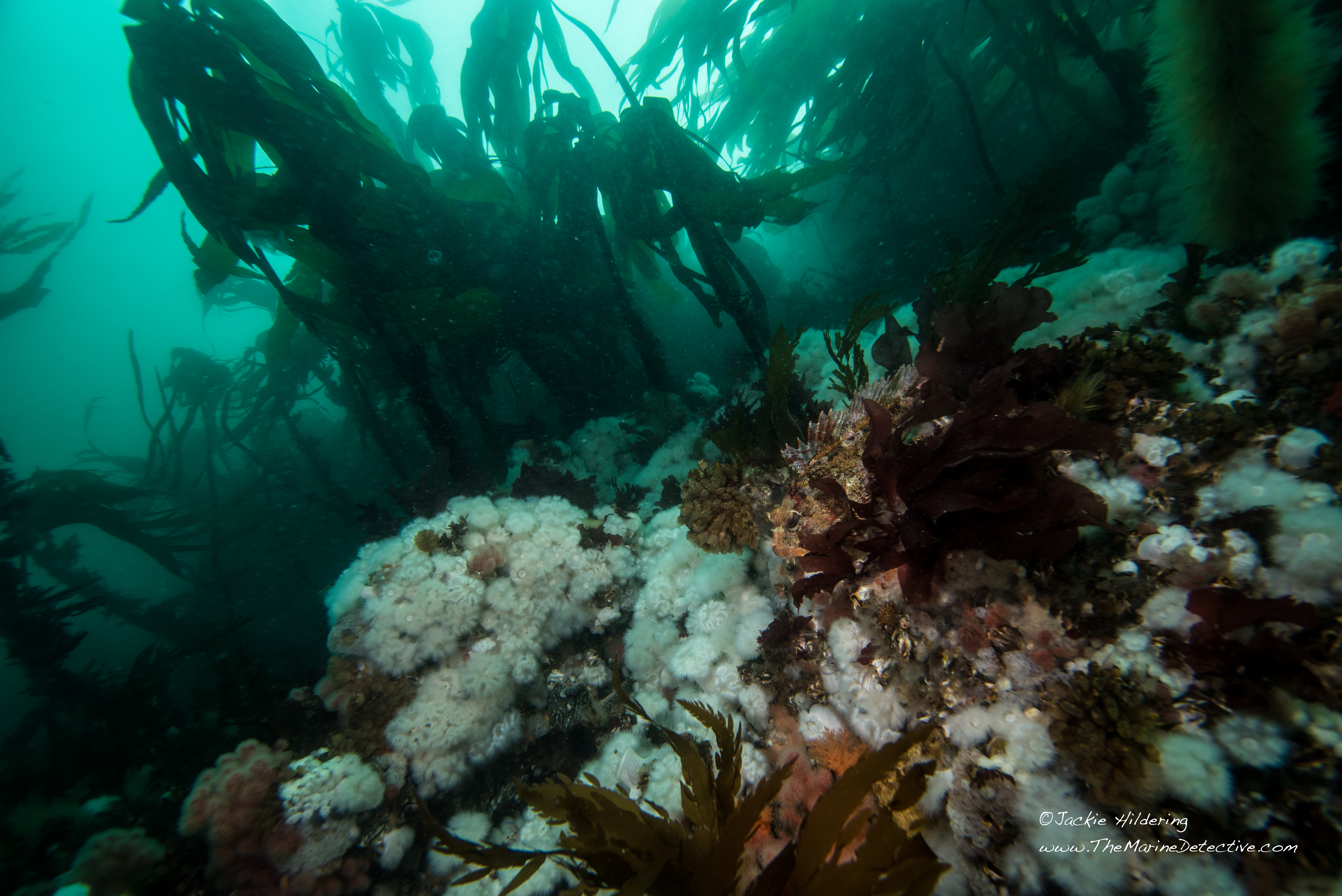 Can you find the Red Irish Lord in the kelp forest in the picture below? If you click the photo you can make it bigger.