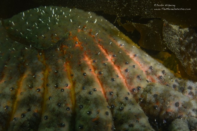 Reporting sightings? I have reported the sighting of this lone, adult Sunflower Star to add to the knowledge of the impacts of SSWD. Citizen science is so important to understanding. Further information on the Disease and where to report sightings of sea stars can be in my blog at this link.