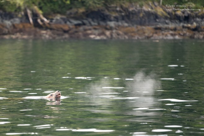 Photos: Mature male Steller Sea Lion exhaling at the surface.