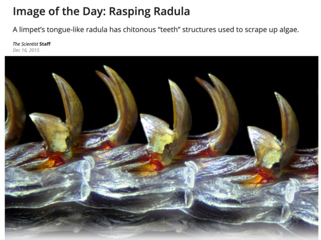 ICT scan of limpet radula from The Scientist Magazine.