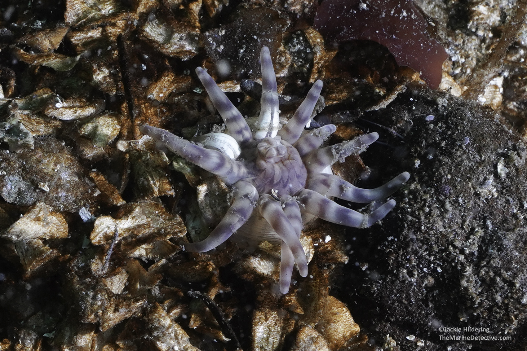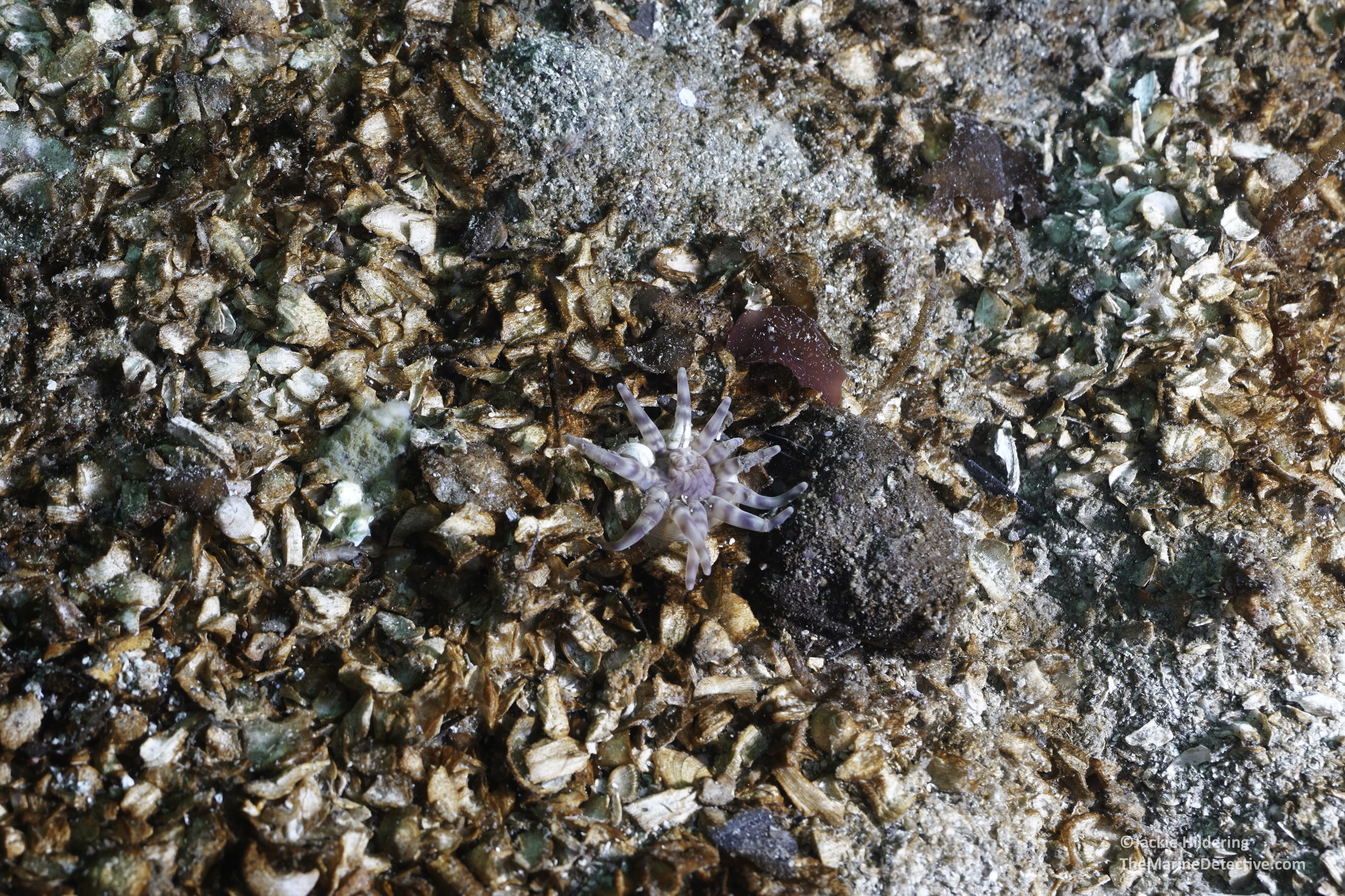 Yes! And in all these years this is the first time I THINK I MAY have photographed a Jelly-dwelling Anemone. They are also known as the Twelve-tentacled Parasitic Anemones and are only up to 2 cm across (Peachia quinquecapitata).