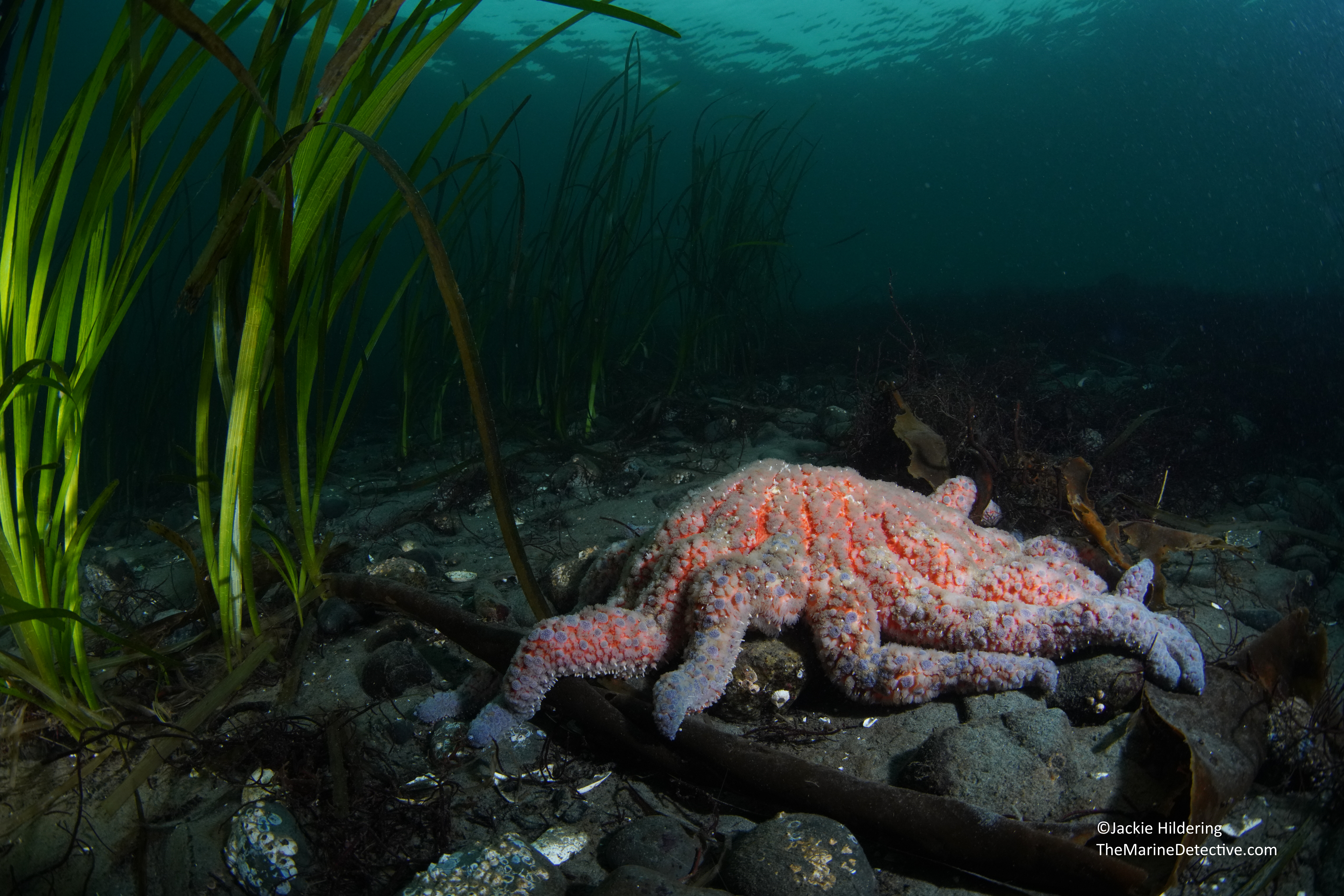 Because Sunflower Stars are in terrible trouble and somehow at this site conditions are such that some adults are surviving. I regularly document “waves” of juveniles but have seen so very few large ones. To see seven relatively large ones at one shallow site in British Columbia is truly exceptional.