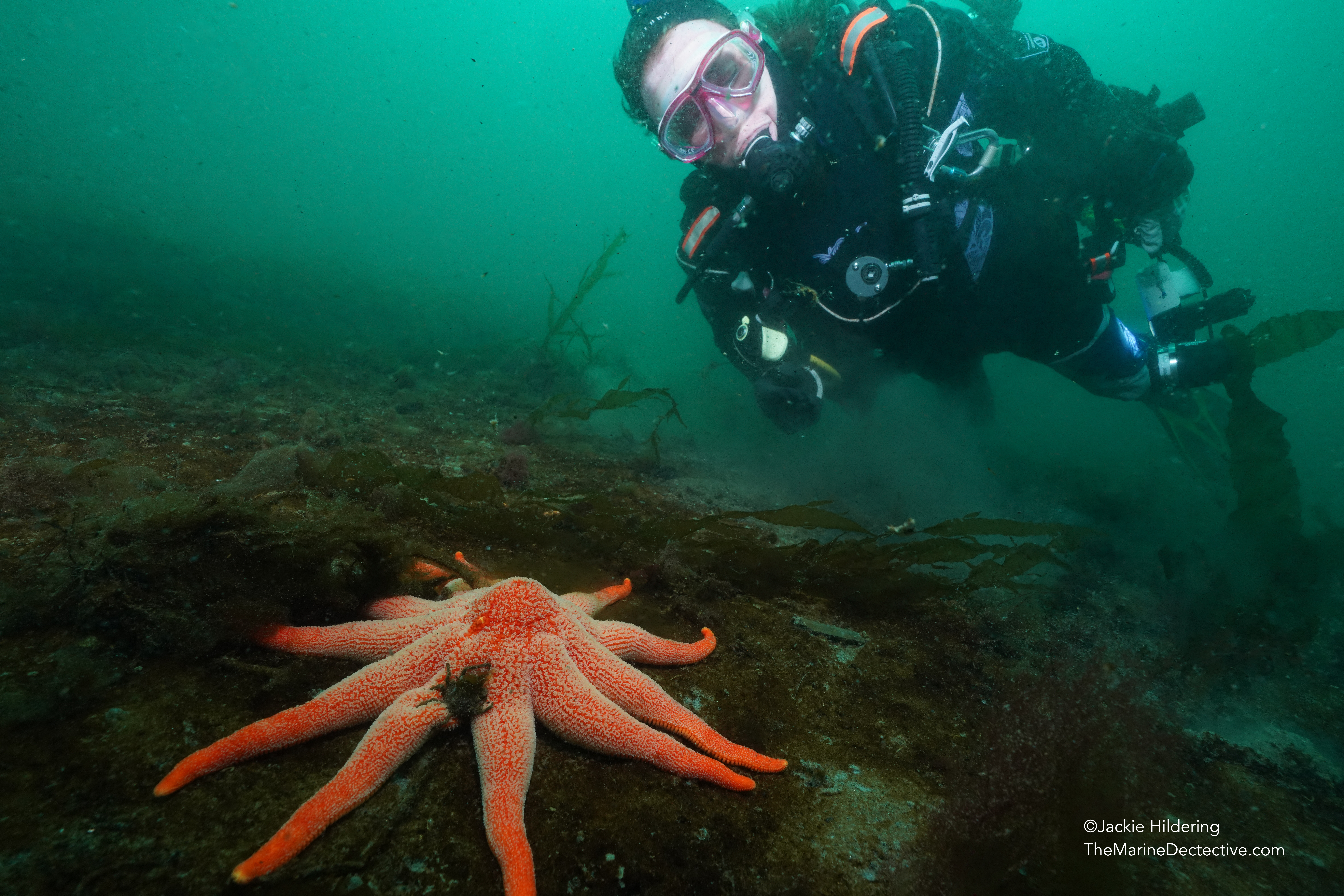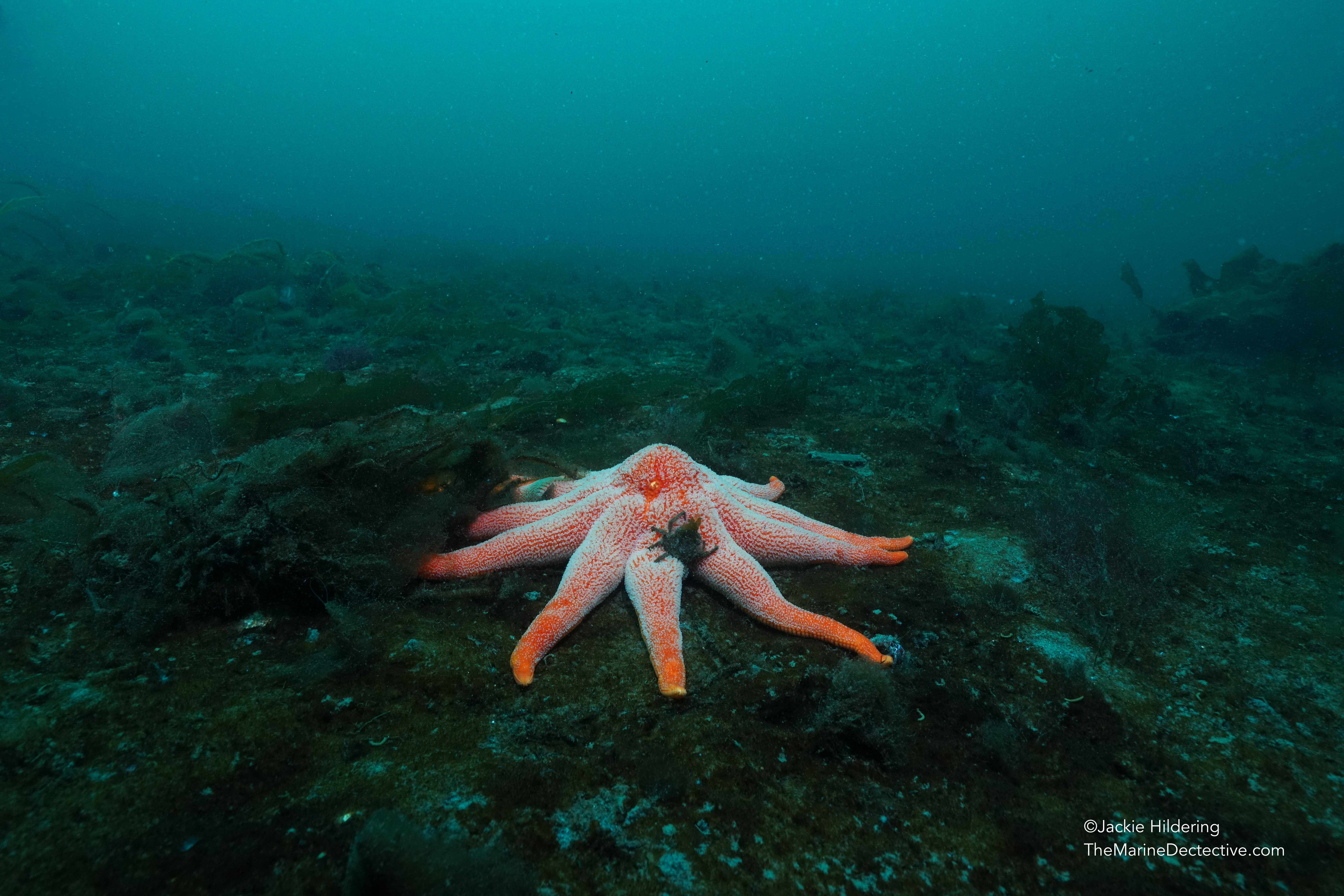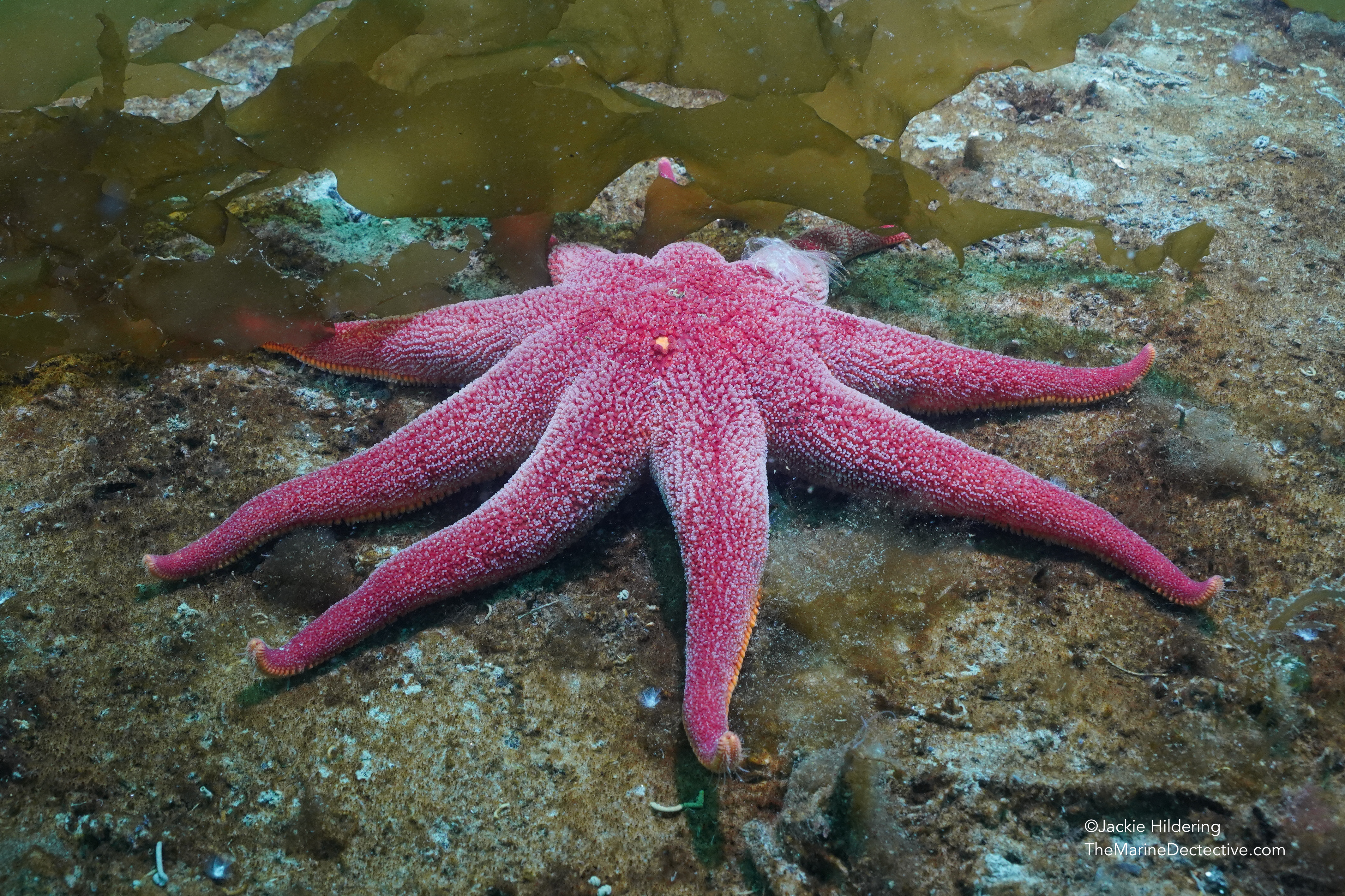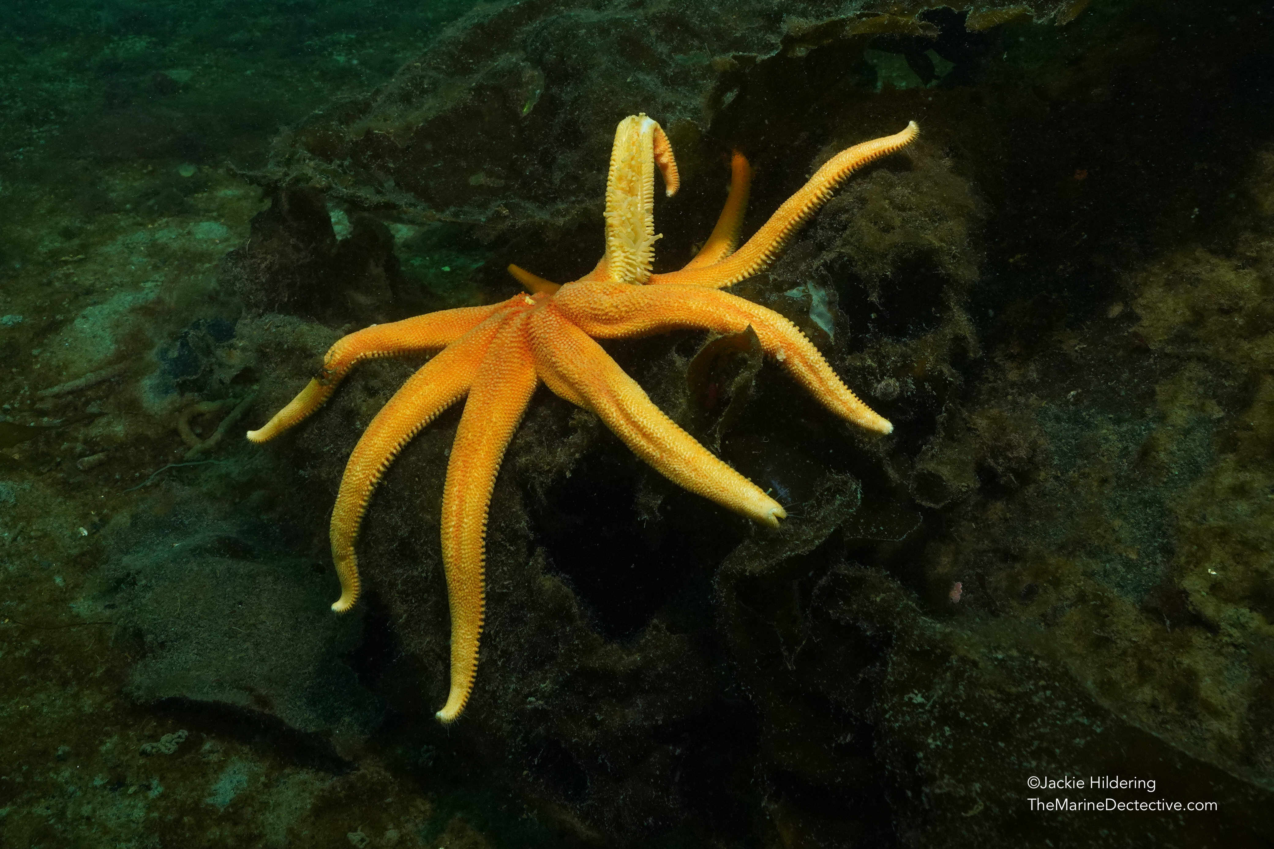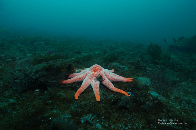 The following photos from my dive yesterday near northeast Vancouver Island are of a new, “undescribed” species of sea star. I documented three different individuals of this species on our dive yesterday, and you will note the colour variation.