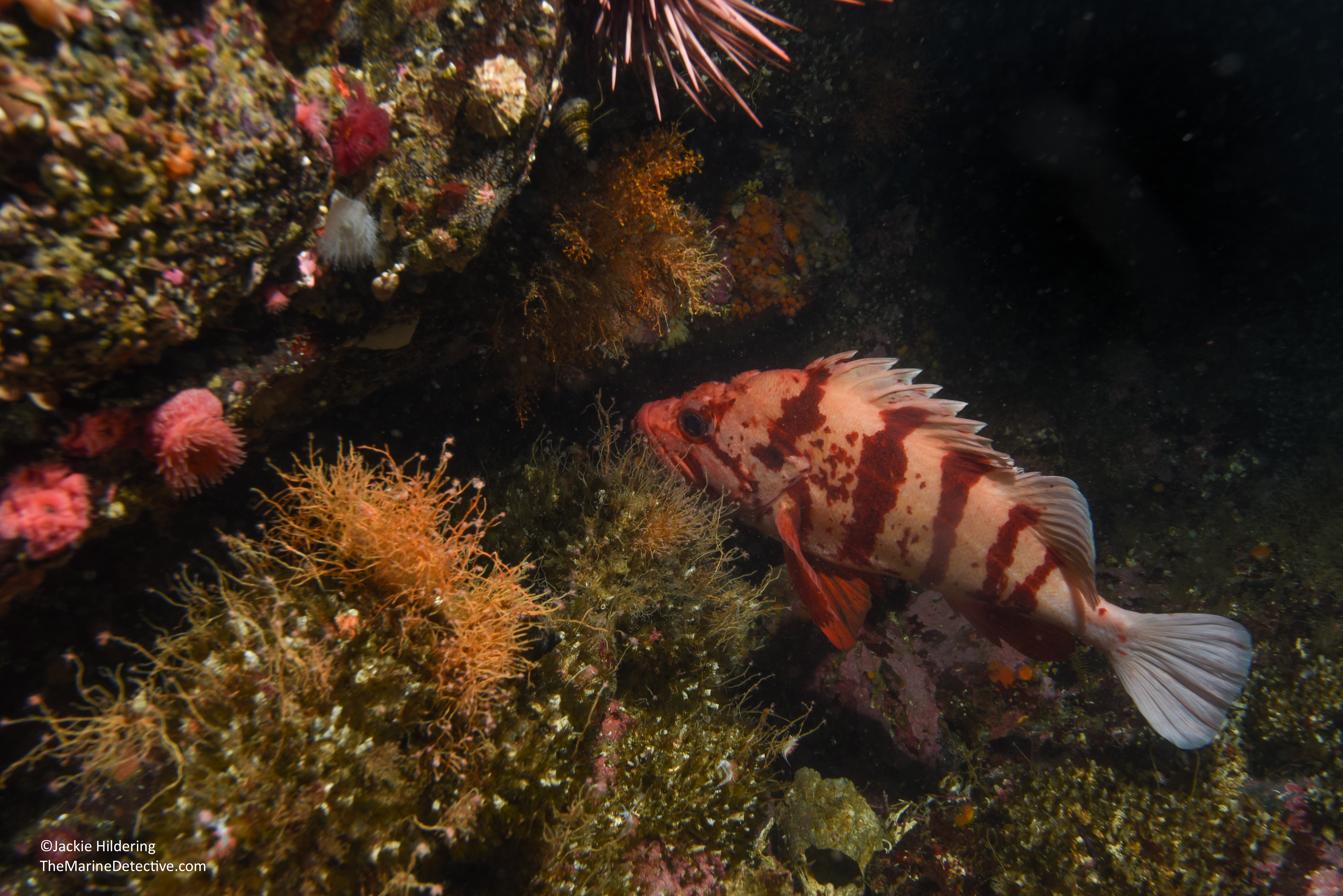 Dive buddy Natasha Dickinson having but an urchin test over her dive light. Sure looks like a lantern doesn’t it? 🙂