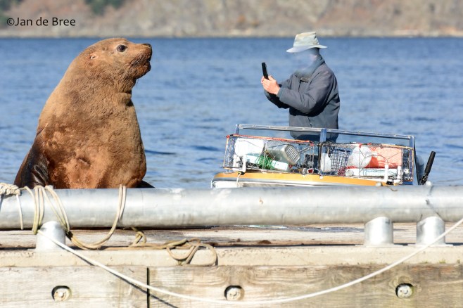 Video below showing a mature male California Sea Lion habituated to being fed who grabbed a girl and pulled her into the water in May 2017 in Steveston, British Columbia. Those striving to sell fish at the dock encouraged feeding the sea lions in order to attract people for fish sales. You’ll note that the sea lion gives warning signs. Feeding marine wildlife is solidly against Canada’s