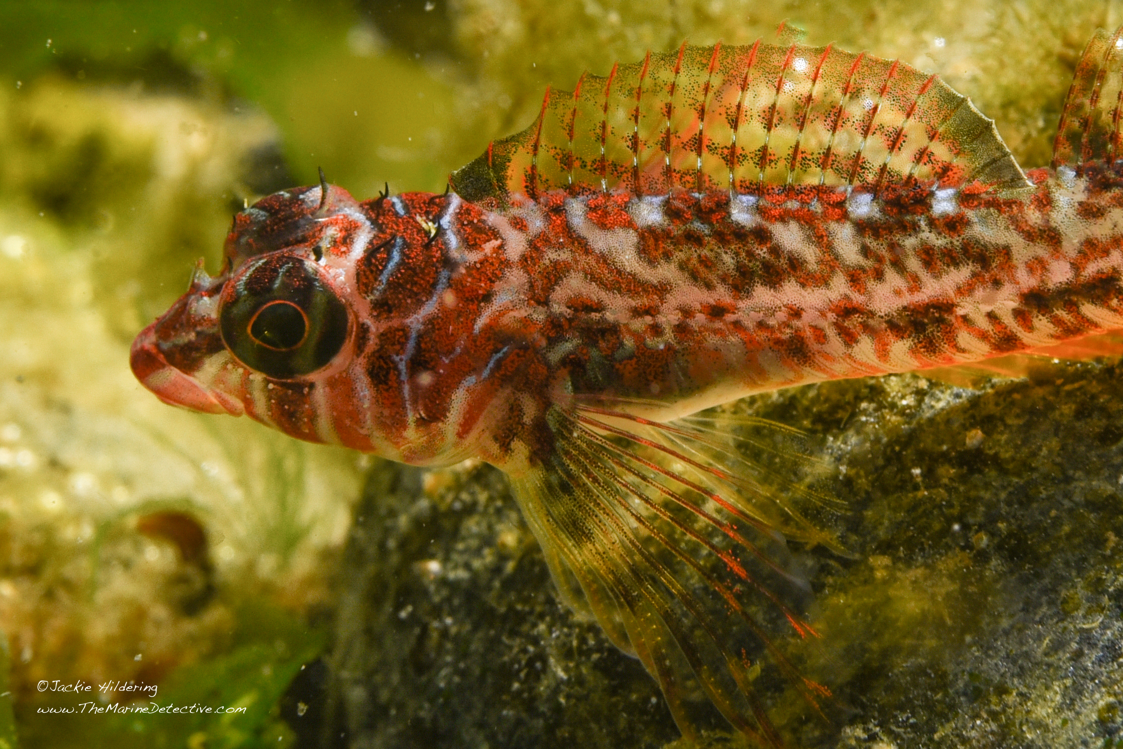 They are a small fish with maximum size being only 10 centimetres. They can be a lot of different colours and the mature males have what look like big bushy eyebrows (cirri).