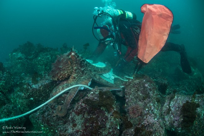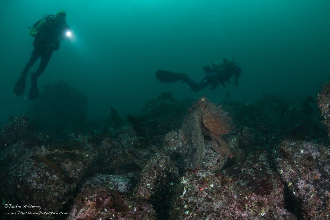 As soon as we got to where the memorial was to be placed, I saw a Giant Pacific Octopus, fully out in the open.