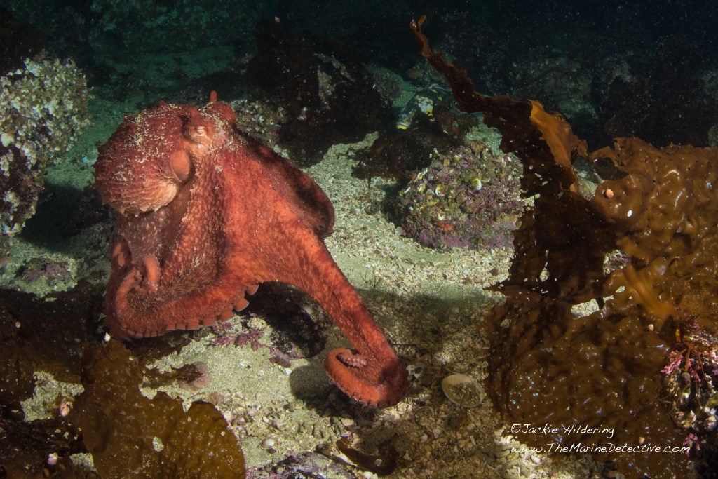 Now that I’ve emphasized how difficult it can be to detect an octopus, let me share the joy of seeing two Giant Pacific Octopus within 5 minutes.