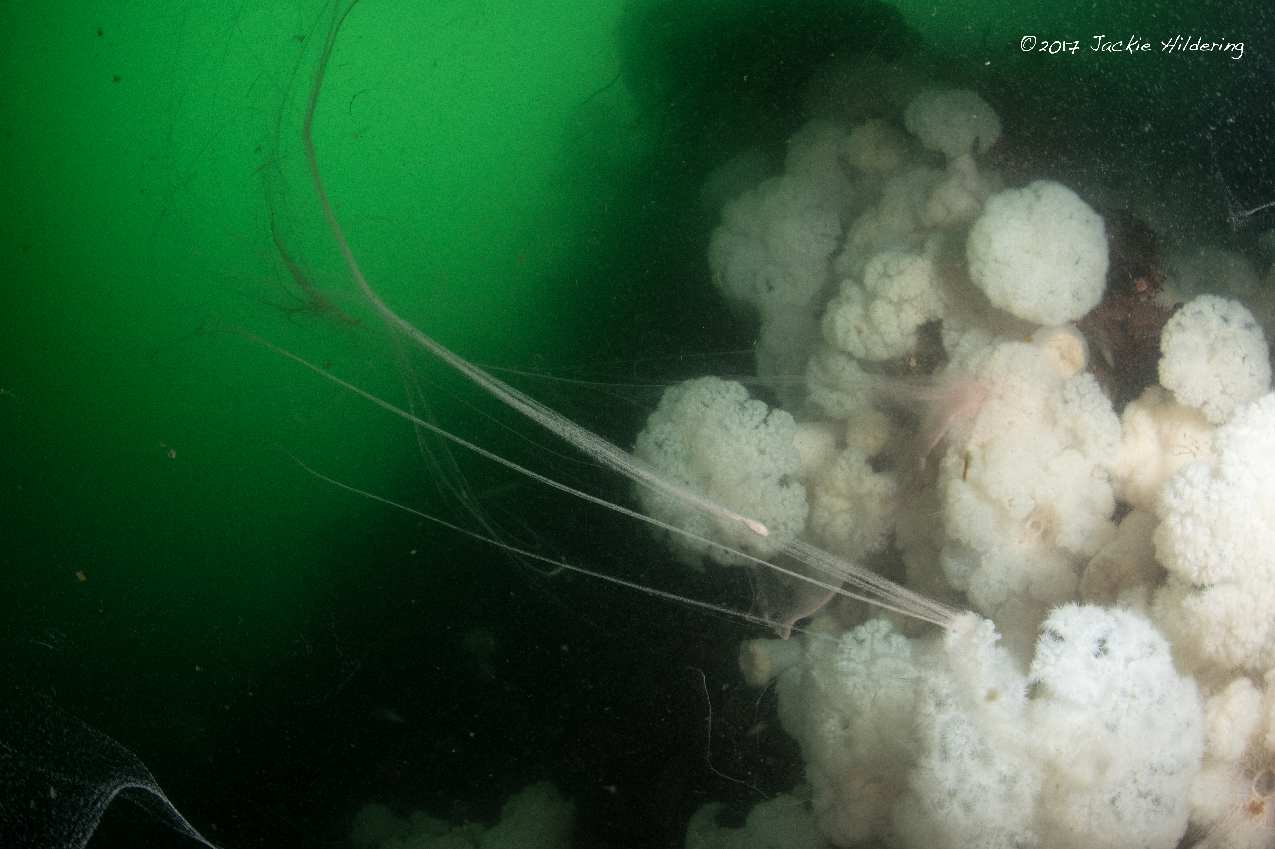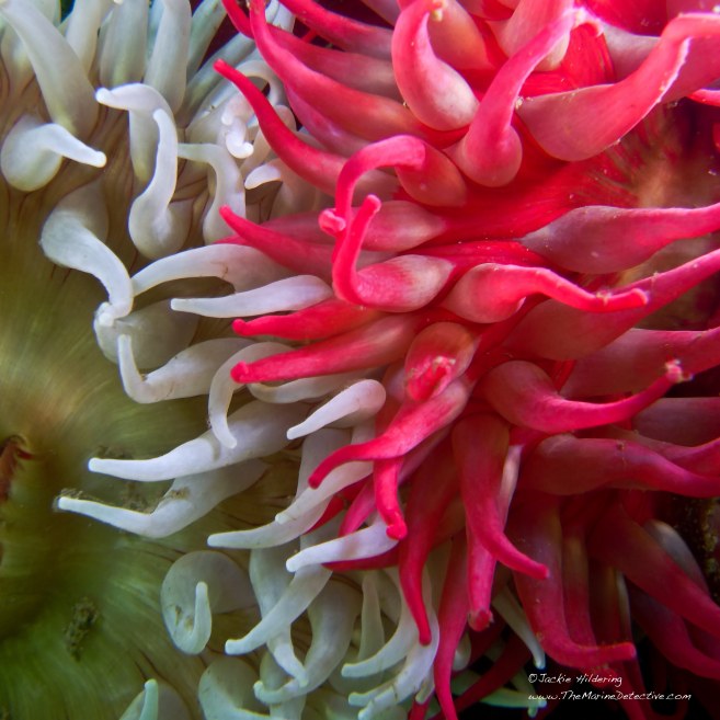 Yes! And in all these years this is the first time I THINK I MAY have photographed a Jelly-dwelling Anemone. They are also known as the Twelve-tentacled Parasitic Anemones and are only up to 2 cm across (Peachia quinquecapitata).