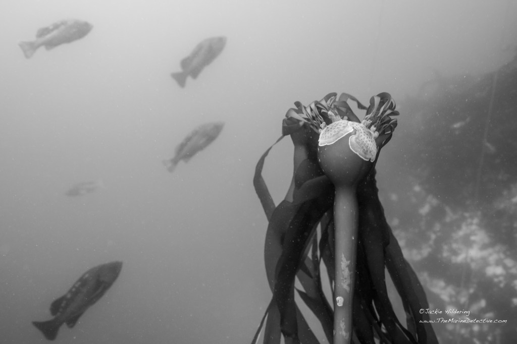 It is the natural cycle of kelp species like Bull Kelp, that at this time of the year, the large version (the sporophyte) begins to break down. Spore packets drop to the bottom of the Ocean which create a different version of the kelp. It’s Alternation of Generations and here is my blog about that wonder. Other kelp species like Giant Kelp are not annuals. They remain year round.