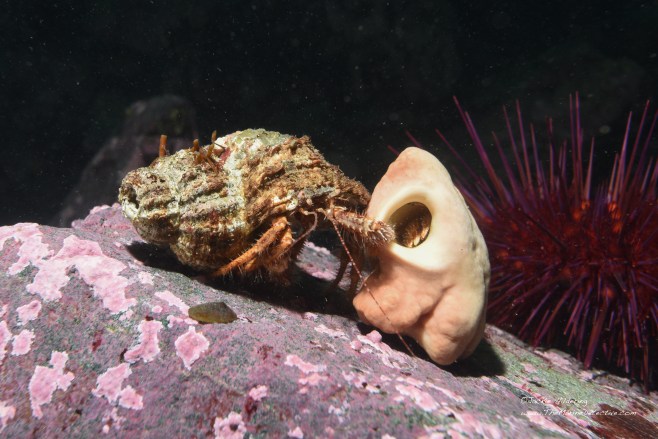 Juvenile Alaska Hermit who will benefit from the sponge growing bigger.