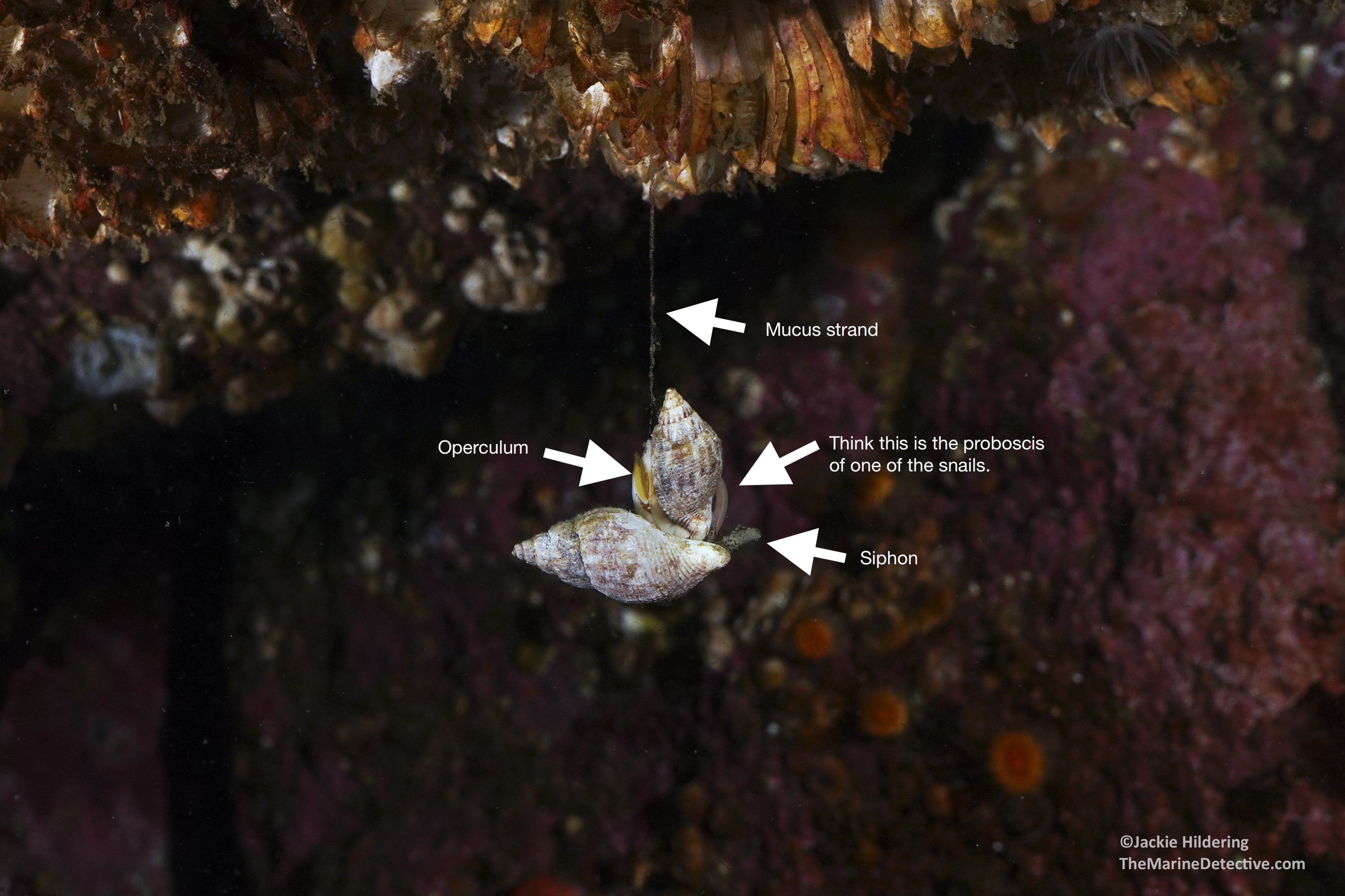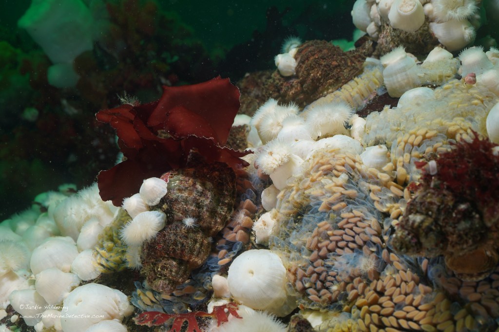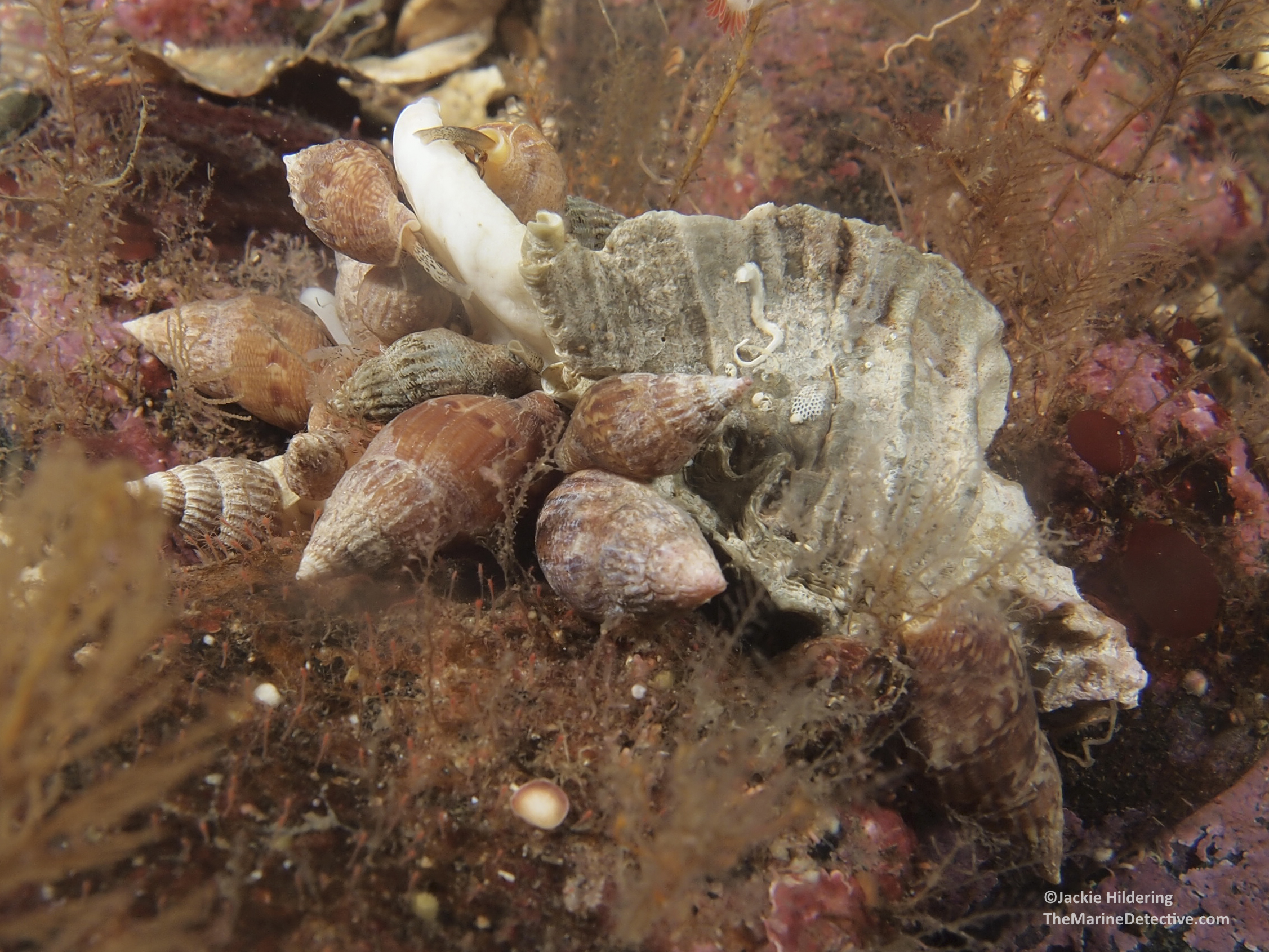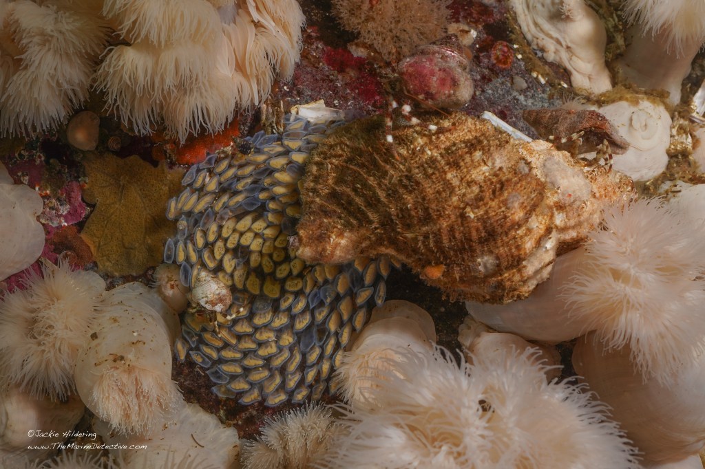 It’s the time of year when female Oregon Tritons are laying their eggs. These are BIG, predatory marine snails at up to 15 cm long.