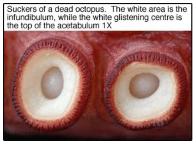This skin is referenced as the sucker lining or “chitinous cuticle” and you can deduce from the photo below how the skin being shed would be of varying sizes.