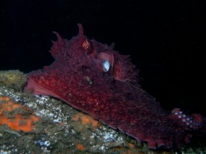 The video was taken by fellow Top Island Econauts Dive Club diver Erika Grebeldinger during one of our dives last month. It is testament to the calibre of her diving and concern for the environment that she was able to “capture” such natural behaviour. It the octopus had been agitated, s/he would have flashed red, postured and/or inked.