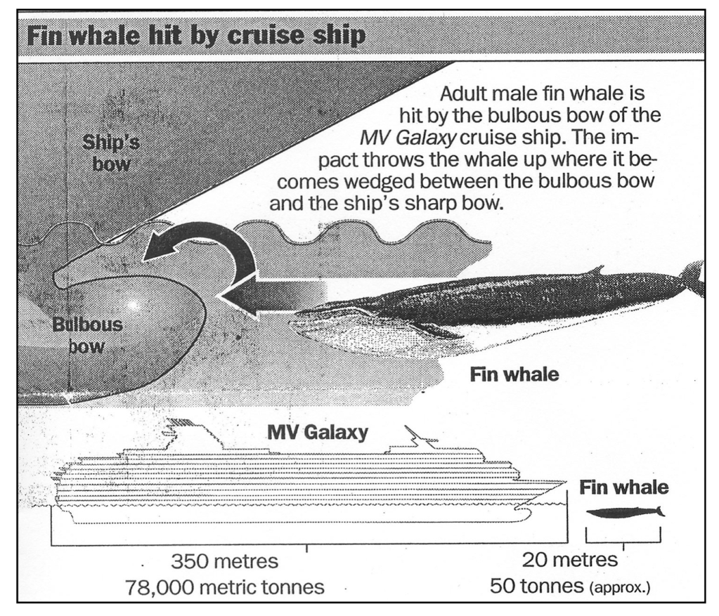 I share the above graphic showing the fate of that first Fin Whale I saw because I think it helps make clear how the second biggest animal in the world can be so vulnerable. Nature versus human technology, efficiency, ingenuity and, disconnect.