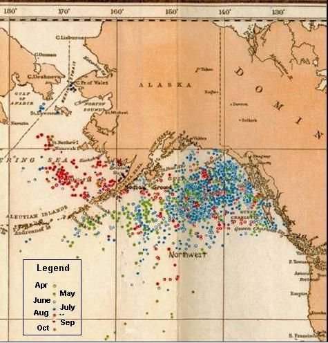 In 1835, intensive whaling began in the North Pacific and the most desirable target was the RIGHT whale. It was the right whale to kill since they were easy pickings with high reward.