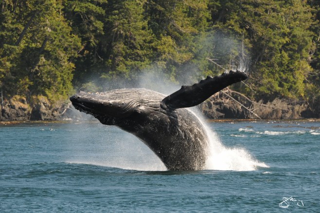 “KC” the Humpback Whale breaching (#2); born in 2002 and here every year since. We have a 2nd chance with these giants. Whaling only ended in this area in 1967. ©Jackie Hildering; themarinedetective.ca.