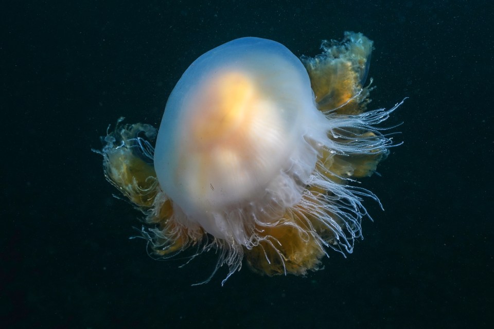 Lion’s Mane Jellies and Egg Yolk Jellies. are the only two common jelly species in our waters that can create a sting that irritates human skin, even when the jellies are dead. The stinging cells (nematocysts) work even when the jelly is dead or you get a severed tentacle drifting by your face. The sting from a Lion’s Mane Jelly is reported to be worst than that of an Egg Yolk Jelly.