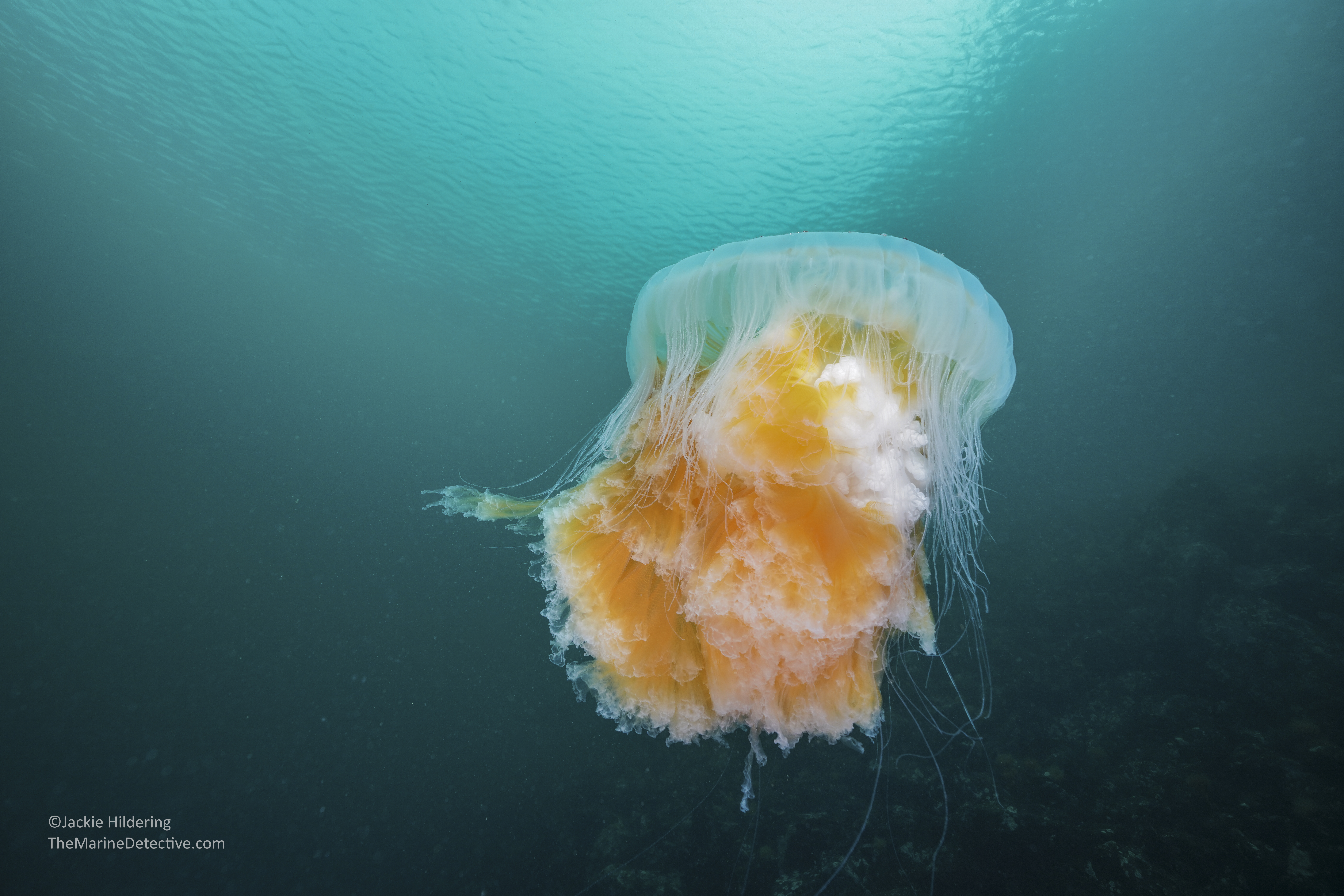 They are big at up to 60 cm across the bell. But that’s no where near as big as the other common giant jelly species off our coast, the Lion’s Mane Jelly. They can be 2.5 m across the bell (the bigger Lion’s Mane Jellies are usually not near the coast).