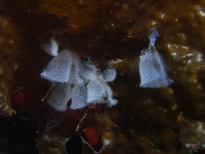 I will share much more about the love life of sea slugs in future postings. Every sea slug species lays eggs that look very different. One of the “cases” I have worked on the longest is to figure out what each species’ eggs look like. A great clue in trying to figure this out is that sea slugs most often lay eggs on their food.